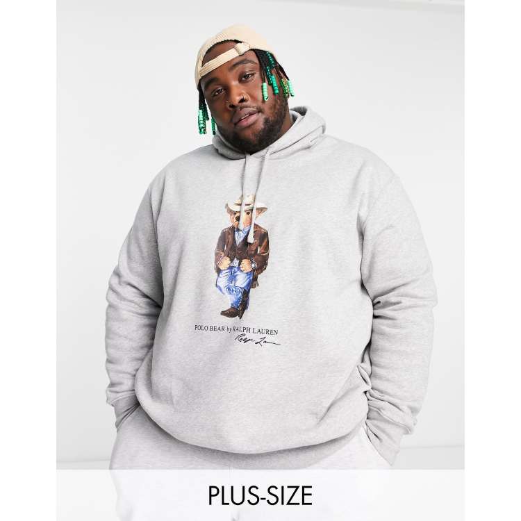 Polo ralph lauren outlet cowboy bear sweatshirt, Polo Ralph Lauren Big Tall cowboy bear print hoodie in gray heather outlet
