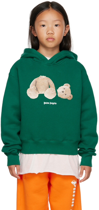 Palm Angels Kids Teddy Bear Cotton Hoodie In Green ModeSens