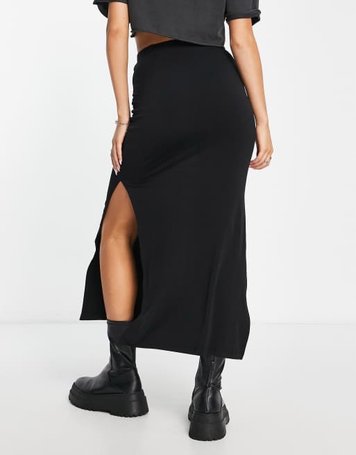 Stradivarius midaxi skirt with split detail in black