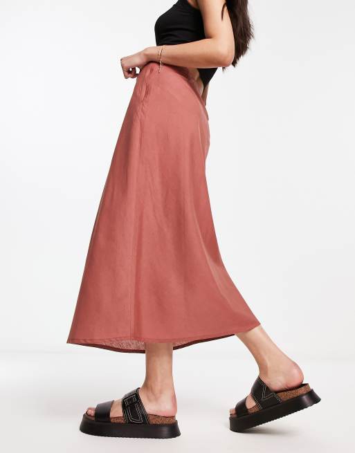 Jupe outlet longue terracotta, ASOS DESIGN Jupe mi longue en lin coup e en biais Terracotta outlet