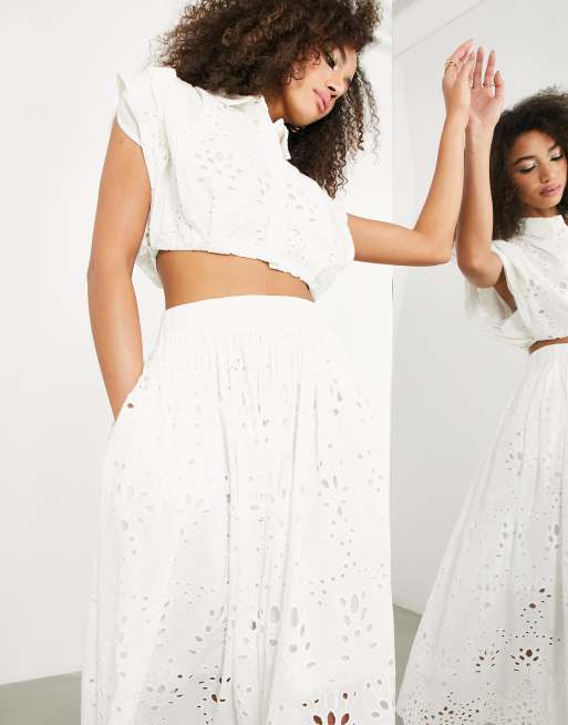 ASOS EDITION Jupe mi longue en broderie anglaise taille pliss e Blanc