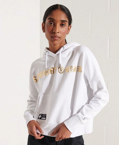 Superdry Women s Independent Logo Foil Crop Hoodie White ModeSens