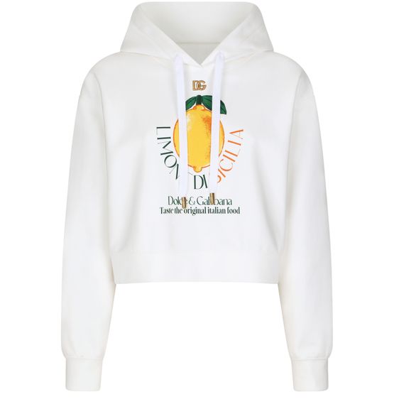 Lemon outlet hoodie women's, Women s Cropped lemon print jersey hoodie with logo DOLCE outlet