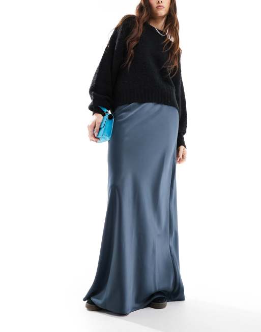 Asos outlet jupe satin, ASOS DESIGN Jupe longue en satin coup en biais Gris acier outlet