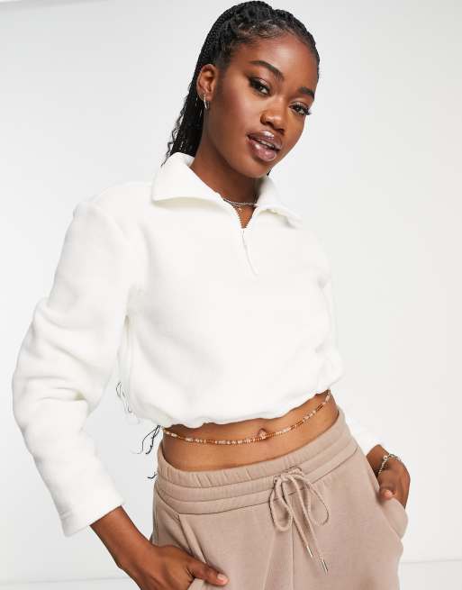 Cropped jumper with outlet elasticated waist, Monki high neck fleece in beige ASOS outlet