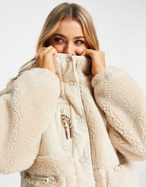 Veste pull and outlet bear femme, Pull Bear Veste duveteuse Beige outlet