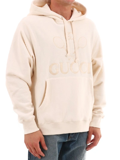 Gucci Embroidered Tennis Hooded Sweatshirt In White ModeSens