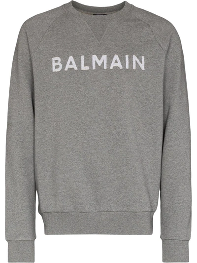 Balmain Flocked logo Cotton Sweatshirt In Gris Chin Fonc Gris Chin