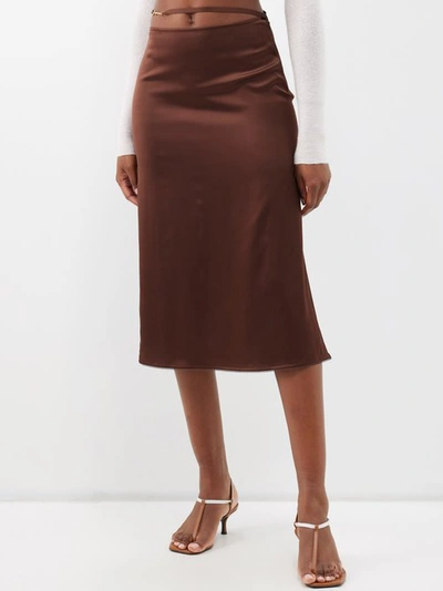 Jacquemus La Jupe Notte Viscose Satin Midi Skirt In Brown ModeSens