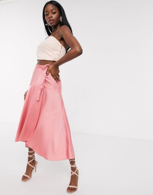 ASOS DESIGN Jupe portefeuille longue en satin nou e la taille