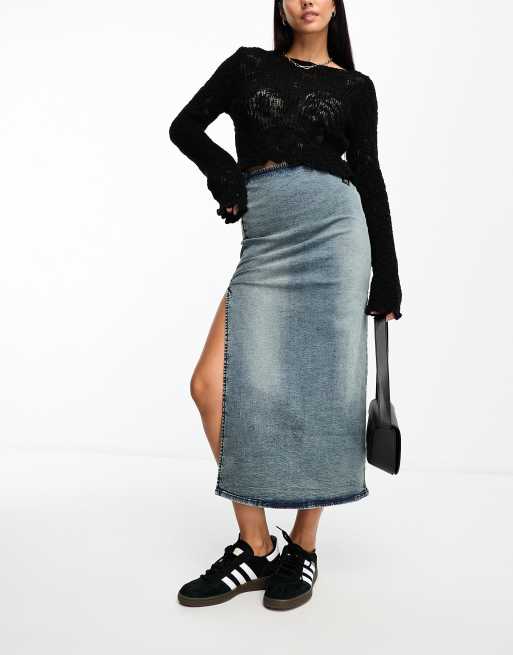 Jupe en outlet jean moulante, Bershka Jupe mi longue moulante en jean Bleu moyen ASOS outlet