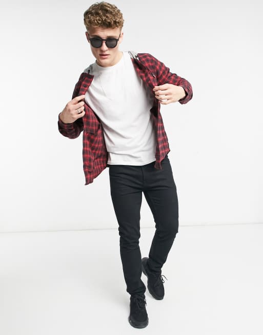 Another Influence hooded check shirt in red black