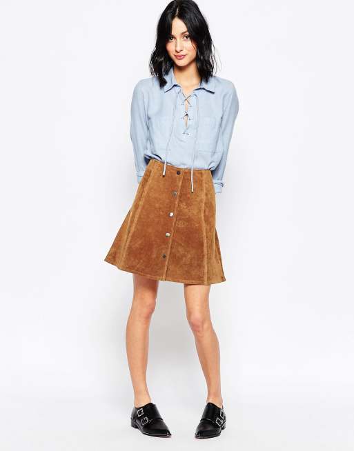 Only Jupe en daim avec fermeture boutons pression sur le devant