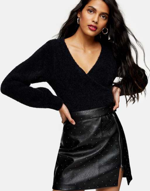 Topshop Mini jupe courte clout e en imitation cuir Noir