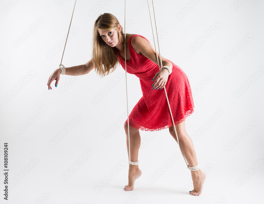 femme pantin avec robe saumon sur fond blanc Stock Photo Adobe Stock