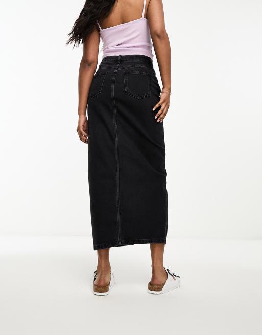 Jupe en Jean Longue Mi longue Taille Haute Noire Pimkie