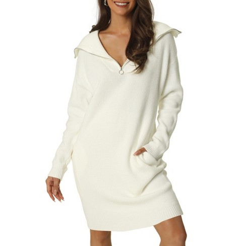 Seta T Women s Fall Winter Zipper V Neck Long Sleeve Slim Fit Casual Sweater Dress White Small