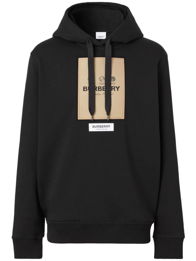 Burberry Logo patch Cotton jersey Hooded Sweatshirt In Black