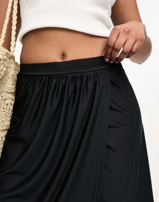 Pimkie outlet jupe noire, Pimkie wrap front midi skirt in black outlet