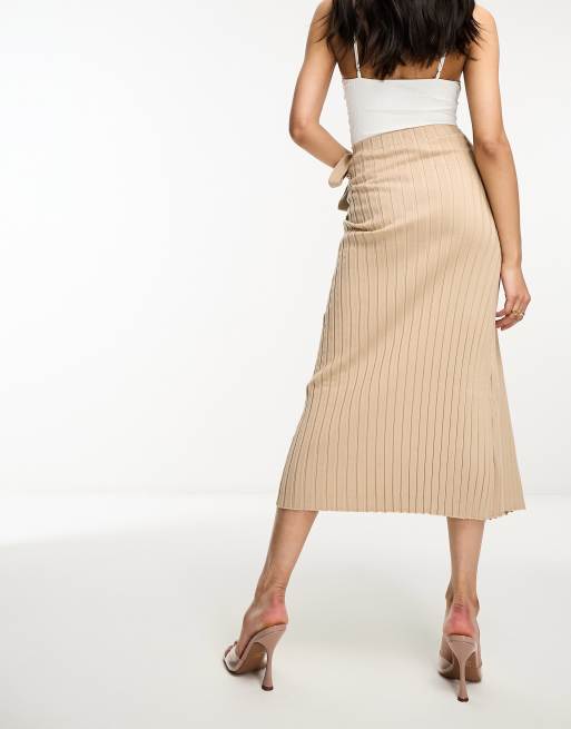 Jupe outlet portefeuille beige, Pretty Lavish Jupe portefeuille en maille fendue Beige ASOS outlet
