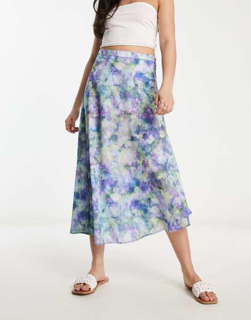 Stradivarius Jupe mi longue en tulle imprim fleuri Bleu