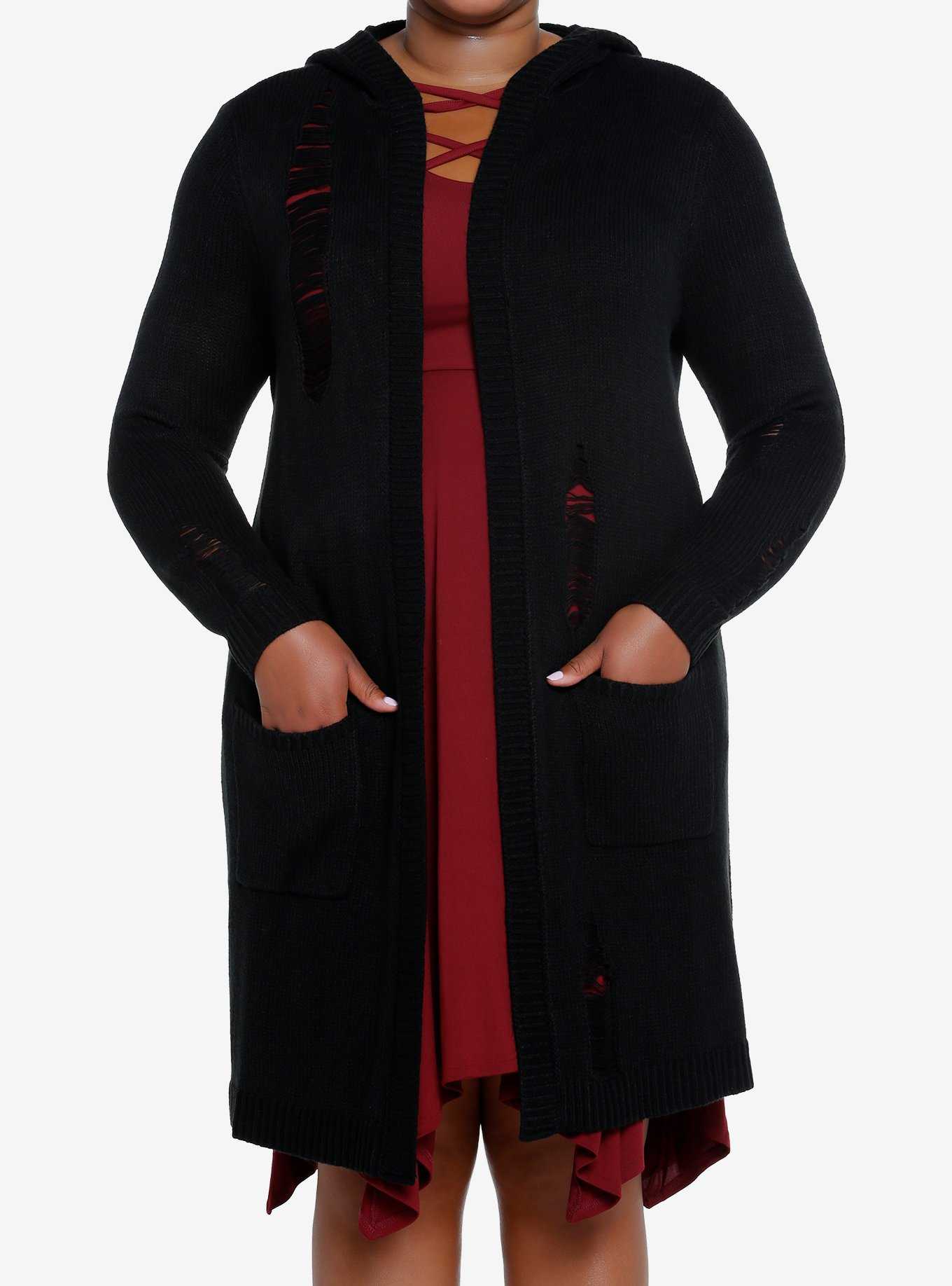Cosmic Aura Black Distressed Girls Hooded Cardigan Plus Size Hot