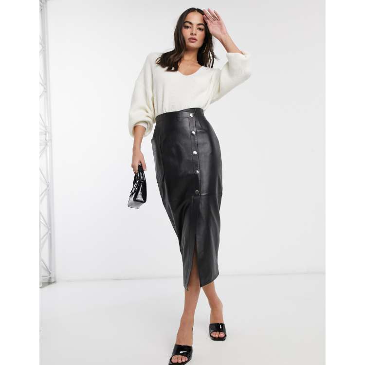 ASOS DESIGN Jupe mi longue en cuir boutons pression Noir ASOS