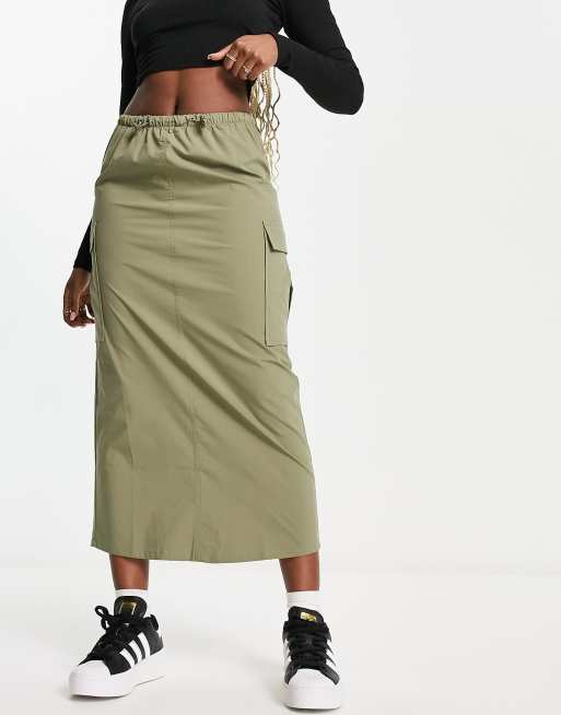 Pull Bear parachute cargo midaxi skirt in khaki with toggle detail