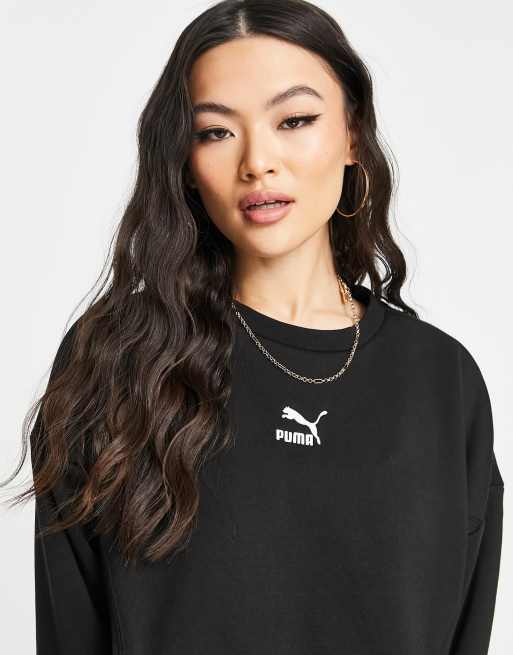 Puma boxy cropped sweatshirt in black exclusive to ASOS