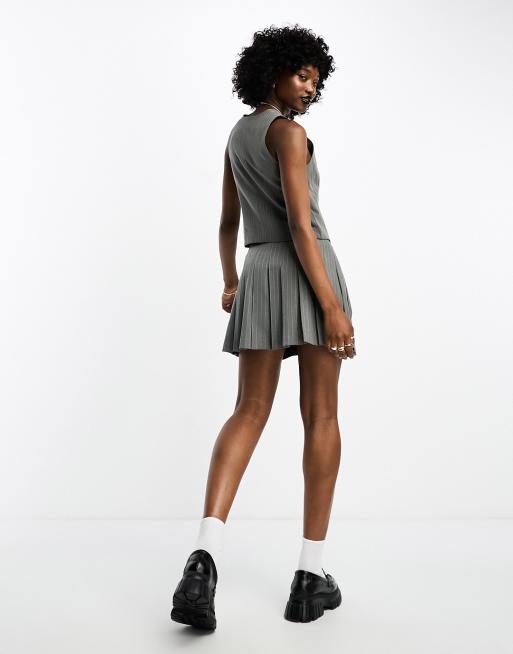 ASOS DESIGN Mini jupe de tailleur pliss e rayures Gris ASOS