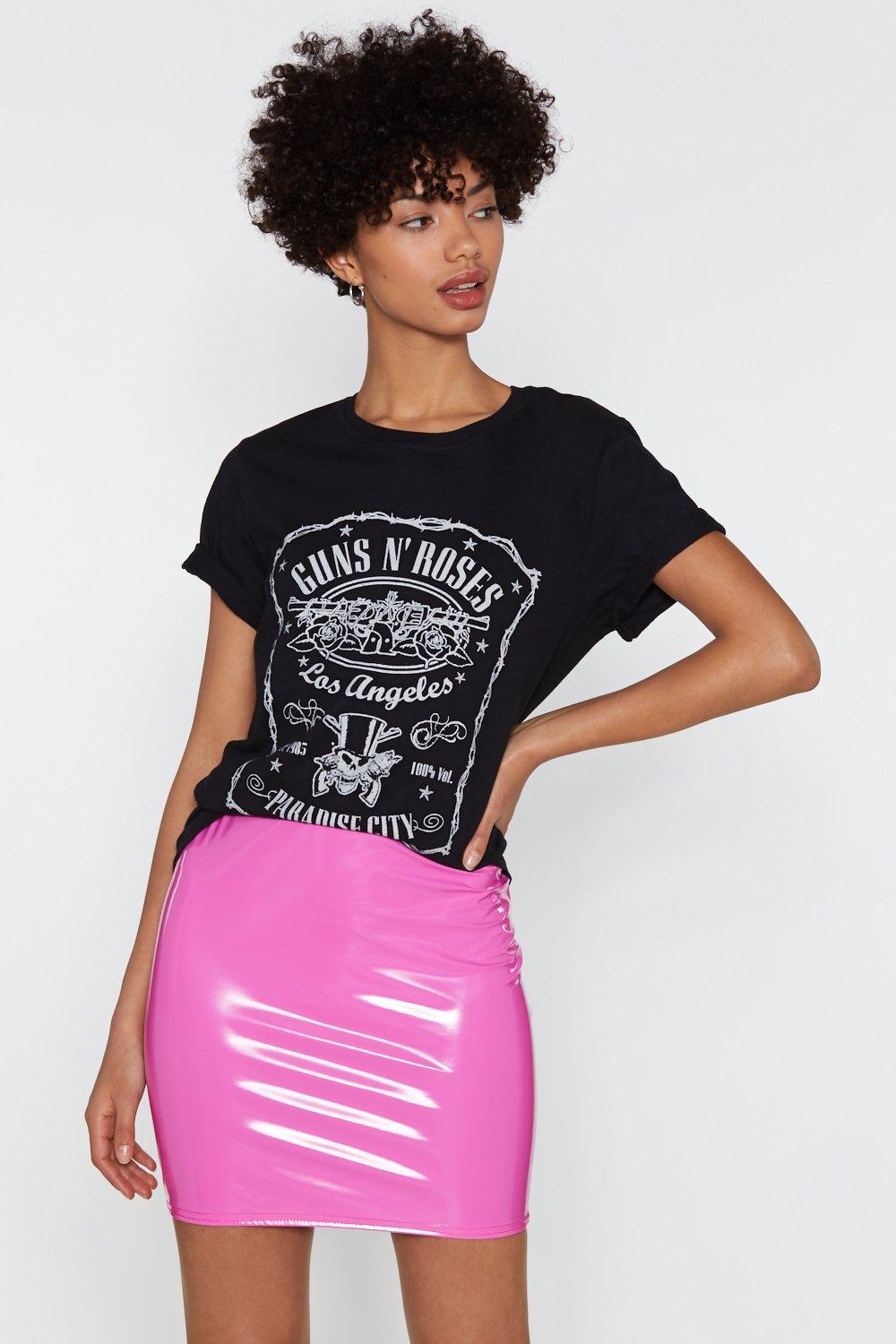 Missguided Rose en Plastique de Vinyle Zip Jupe port e par Roxy