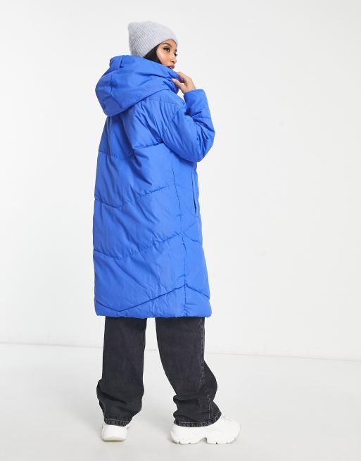 Noisy May Petite longline padded coat with hood in blue
