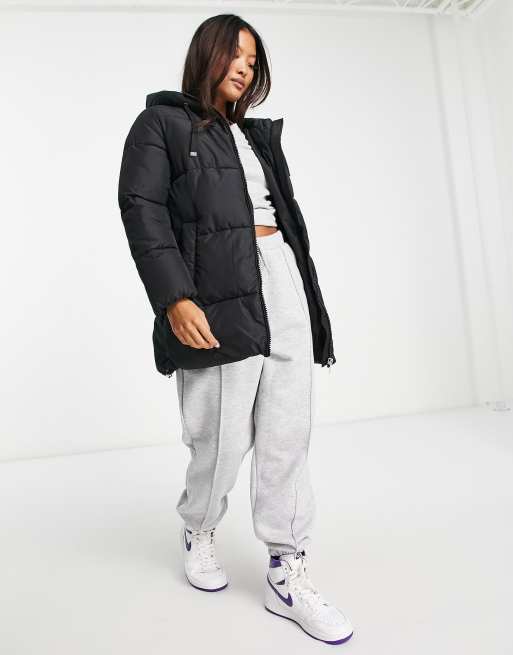 New Look Petite mid length hooded puffer coat in black