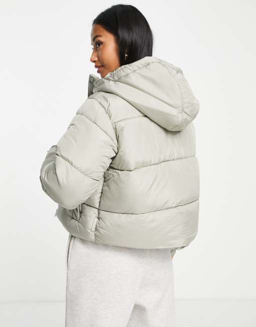 Missguided Petite stepped hem puffer jacket in sage