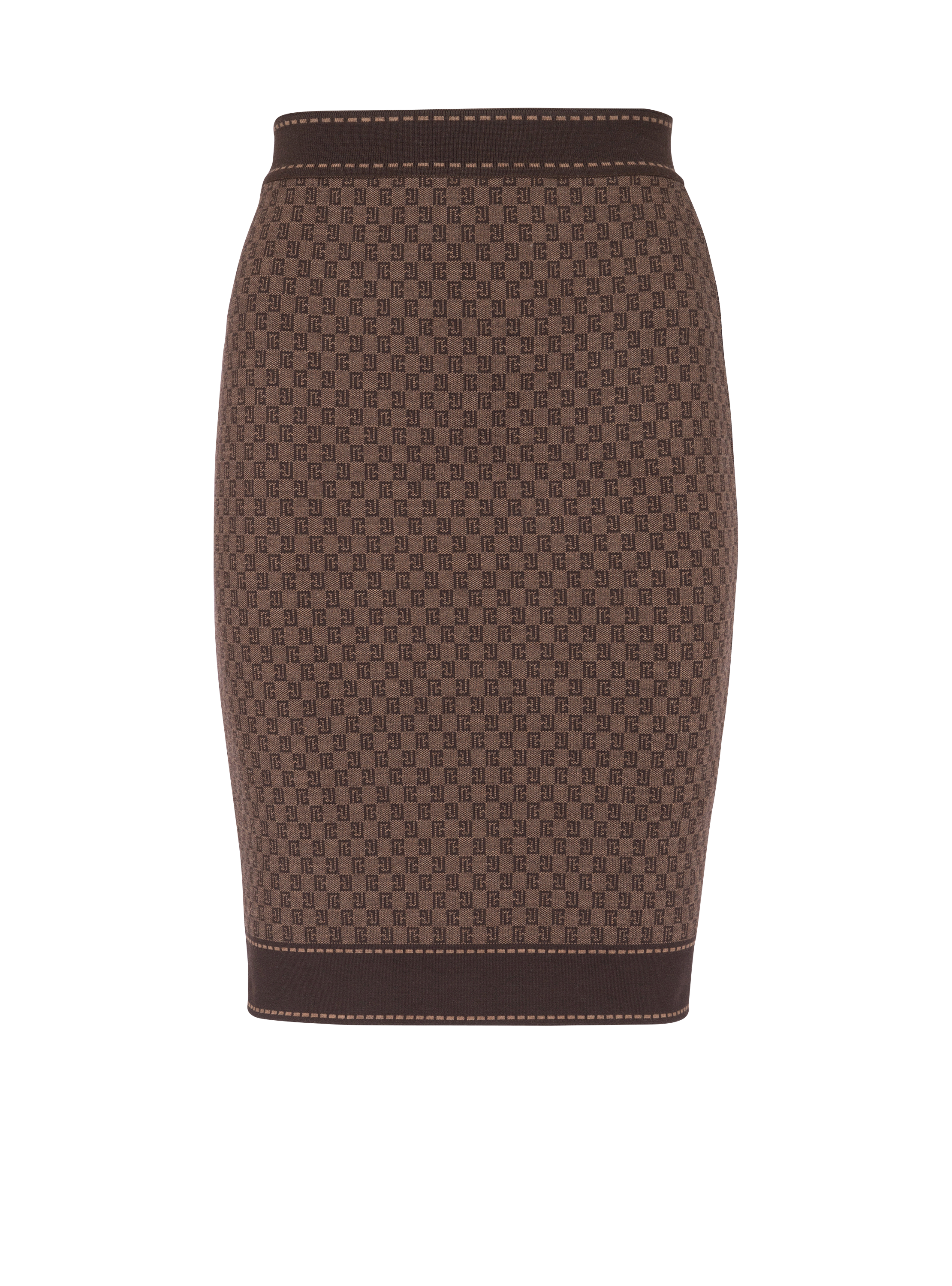Jupe en jacquard mini monogramme marron Femme BALMAIN