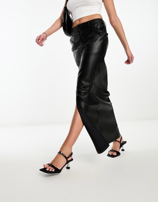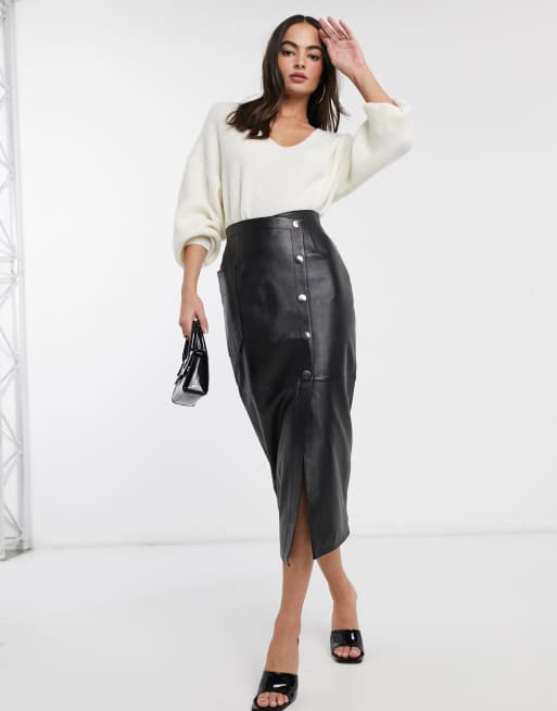 Jupe simili outlet cuir asos, ASOS DESIGN Tall leather look midi skirt in black outlet