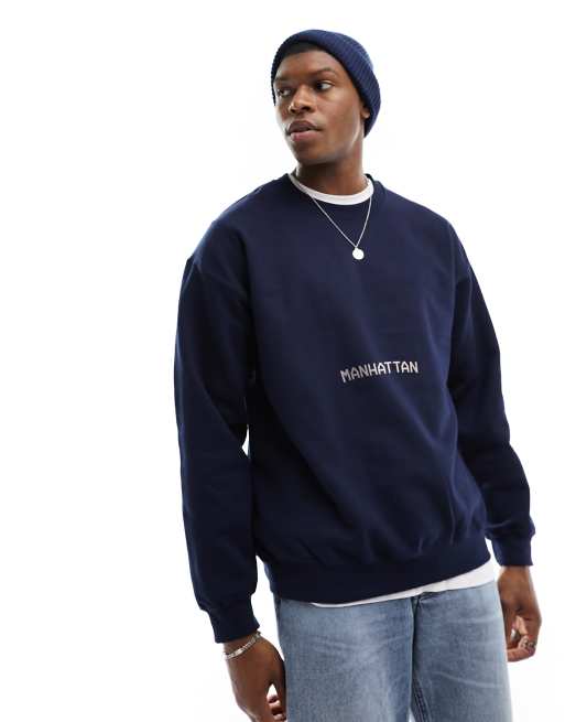ASOS DESIGN oversized navy sweatshirt with Manhattan running