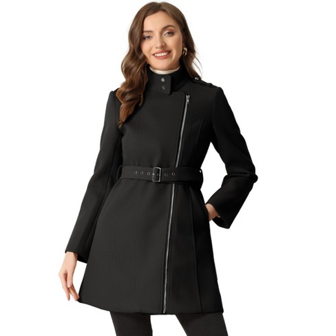 Allegra K Women s Classic Stand Collar Zip Up Trench Coats with Belt Black Small