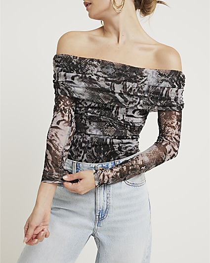 Buy Style Quotient Women Black Floral Print Off Shoulder Crepe