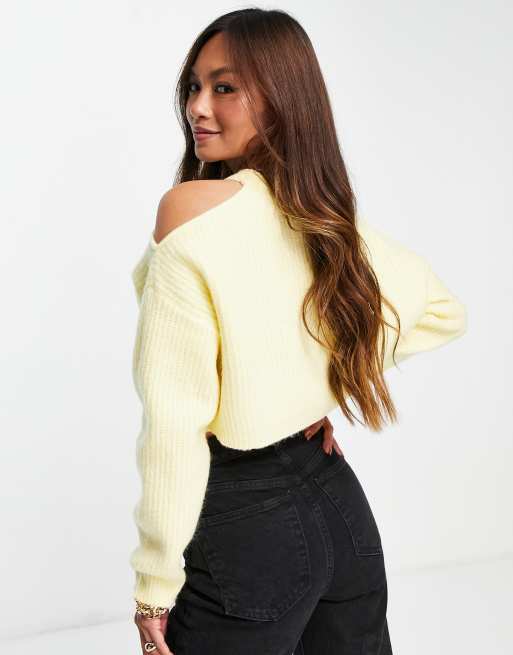 ASOS DESIGN jumper with cut out shoulder detail in yellow ASOS