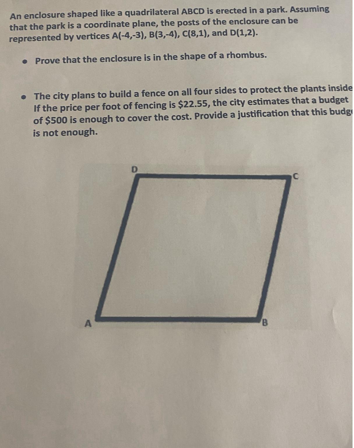Solved An enclosure shaped like a quadrilateral ABCD is Chegg