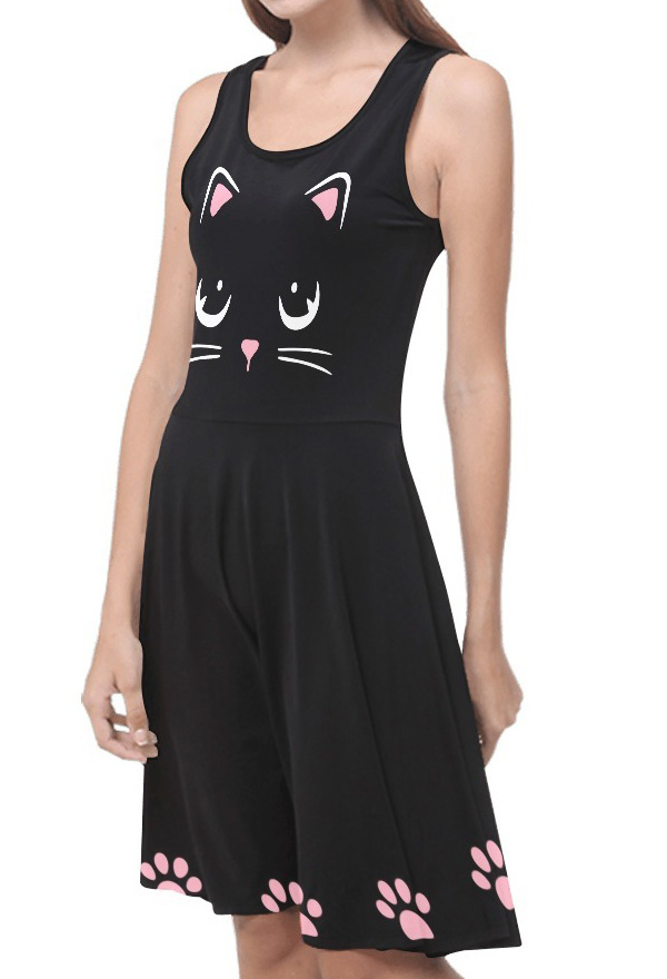 Robe motif chat pour femmes jupe noire au genou haut minimaliste 3D nouvelle collection printemps t 2023