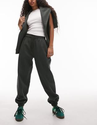 Topshop Petite Oversized Cuffed Sweatpants In Khaki green ModeSens
