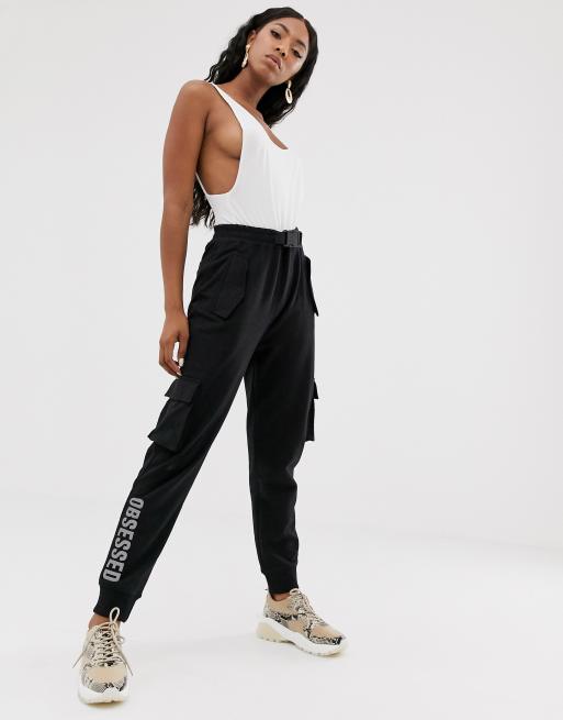 Public Desire utility tracksuit bottoms with obsessed leg print ASOS