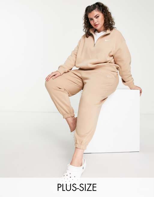 Nike Plus mini swoosh oversized high rise joggers in hemp brown ASOS