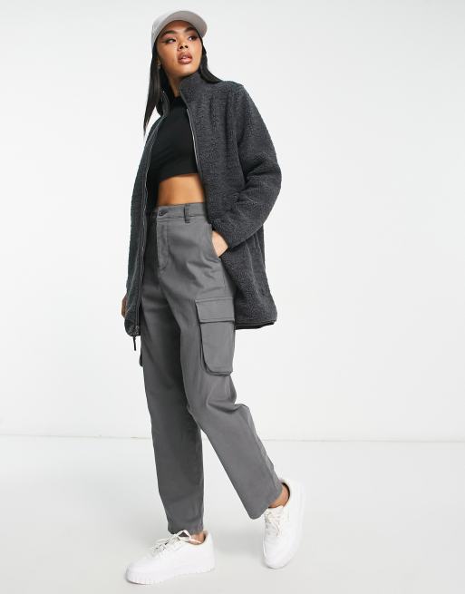 Jack Wolfskin High Cloud full zip borg long jacket in black ASOS