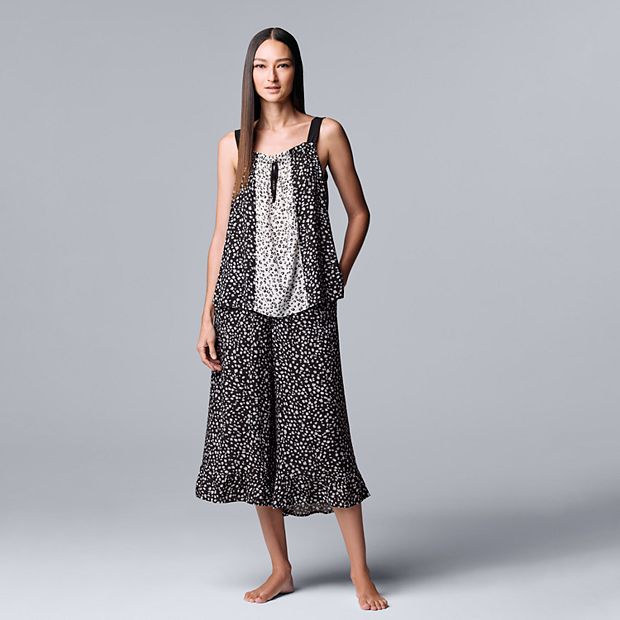 Women s Simply Vera Vera Wang Woven Pajama Tank and Pajama Culotte