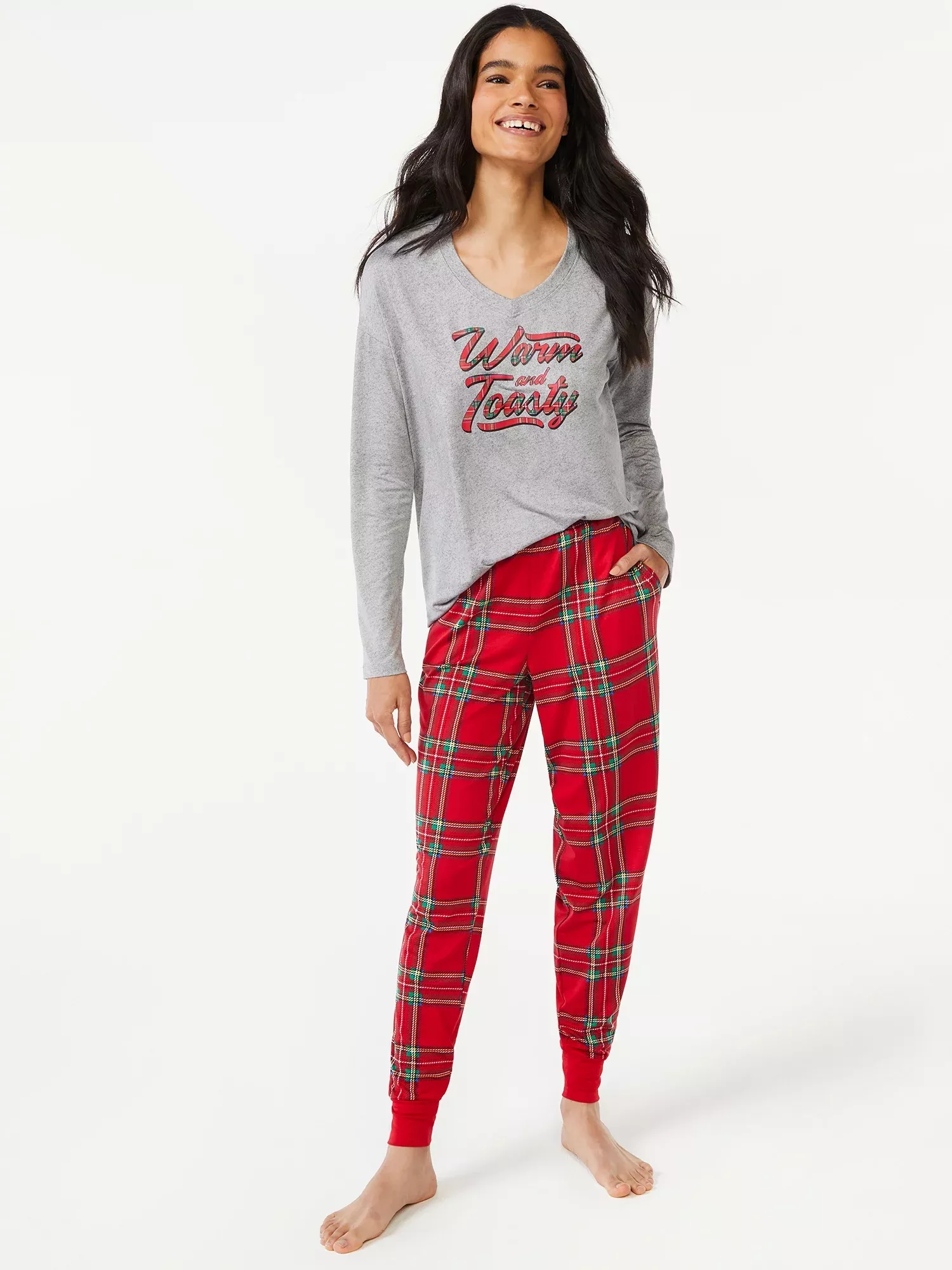 Joyspun Women s Long Sleeve Sleep Top and Jogger PJ Set 2 Piece