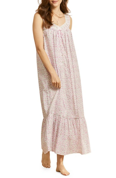 Eileen West Floral Lace Trim Cotton Ballet Nightgown In Whtditsy