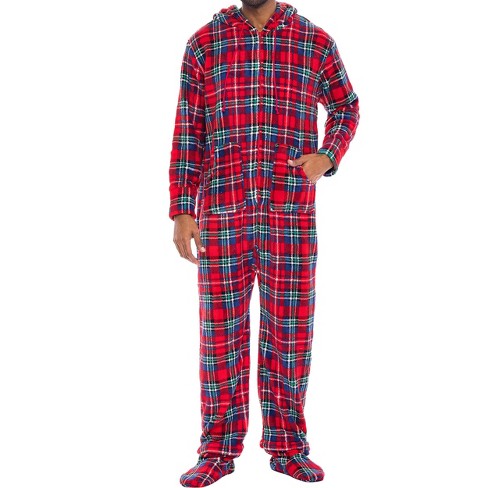 Adr Men s Hooded Footed Adult Onesie Pajamas Set Plush Winter Pjs